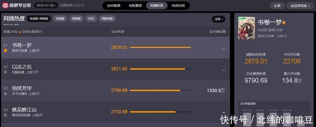 截止发文时间,从“猫眼专业版”实时数据显示可知,当前热播电视剧中,网播热度最高的五部剧分别如下: 1、《书卷一梦》 主演: 李一桐/刘宇宁/祝绪丹 剧情点评: 如果说好看的话那就只有搞笑,轻喜,但是这部剧还是有很大的槽点,拼好剧我就不多说了,女主前面真的太自以为是了,仗着自己看过剧本,什么都不管,而且男二有时候分析的说的也没错啊,男主假扮的离十六就刚开始救过女主的命,然后女主就开始恋爱脑了,就是开始一股脑的相信他,男二的分析她是一点都不听,前面的剧情真的让人很无语,其实节奏挺慢的,一共四十集,现在十几集了,感觉才发展了那么点,多少让人担忧后面的剧情怎么发展。所以,总的来说,整体剧集质量中规中矩吧,只能当作下饭剧看看。